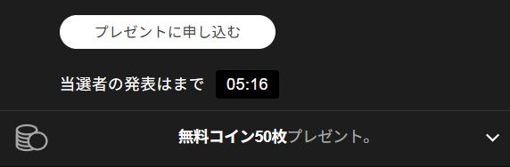 「プレゼントに申し込む」をクリックすると、無料コイン50枚の抽選に参加できます。